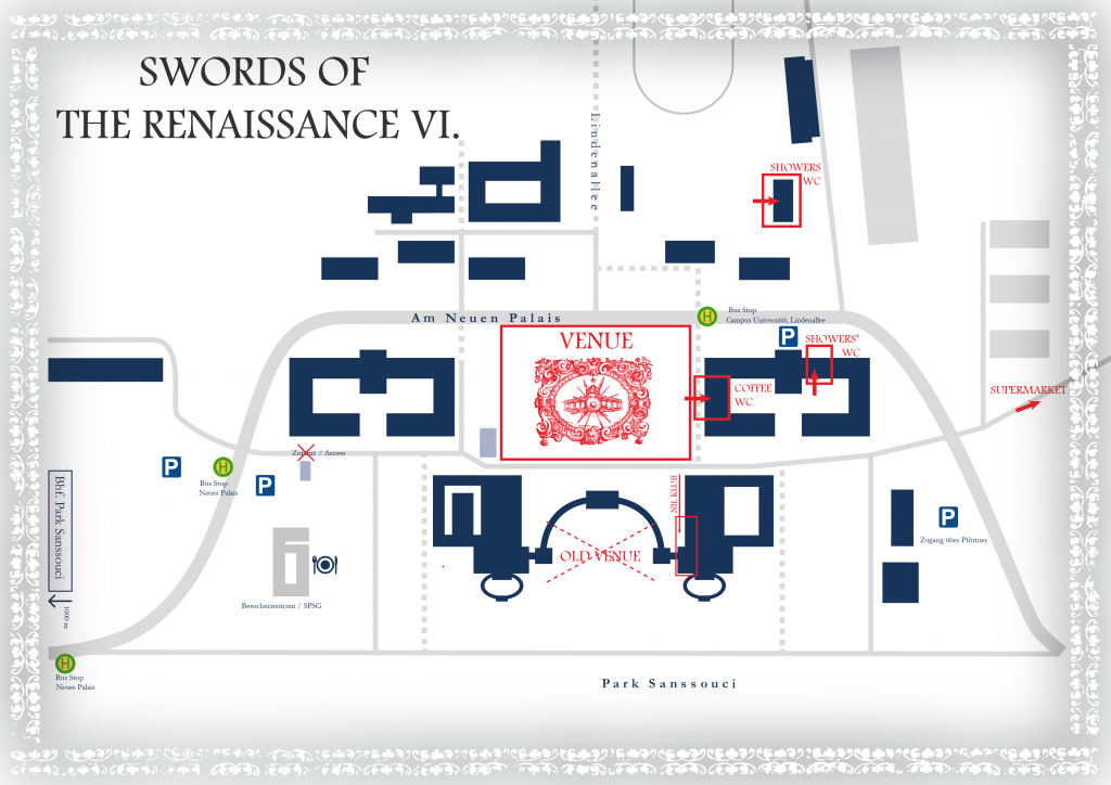 | 15:45- 16:15 | breather | Daniel Tallarek Kissing swords – Getting intimate in Mezza Spada | breather | breather | Cornelius Berthold Workshop: Move your body, not the arm | breather |